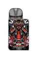 Сверху, при помощи магнитного коннектора зафиксировали сменный картридж с крупным приплюснутым мундштуком. Рядом, на скругленном углу сделали петлю для крепления широкого темляка. Ниже расположили воздухозаборное отверстие с ползунком и цветной индикатор.