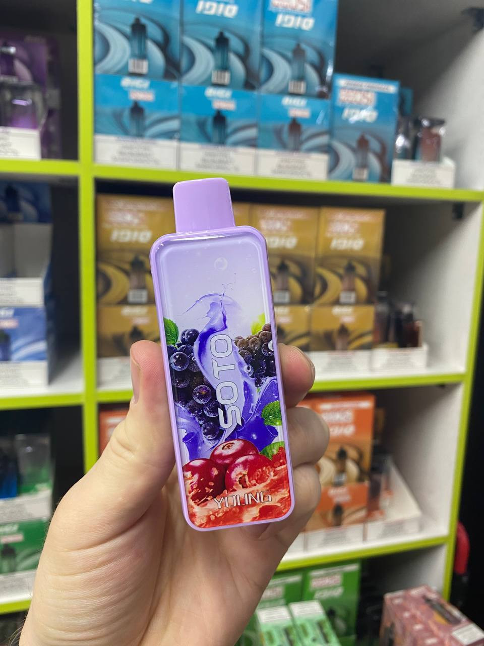 Soto Young 10000 затяжек Вкусы: Ледяной фонтан Клубника-яблоко Манго-ананас-апельсин Ириска Клюква-виноград Смешанные ягоды Банан-холодок Черника-алое вера Ледяная арбузная корка Кислый манго-ананас-холодок