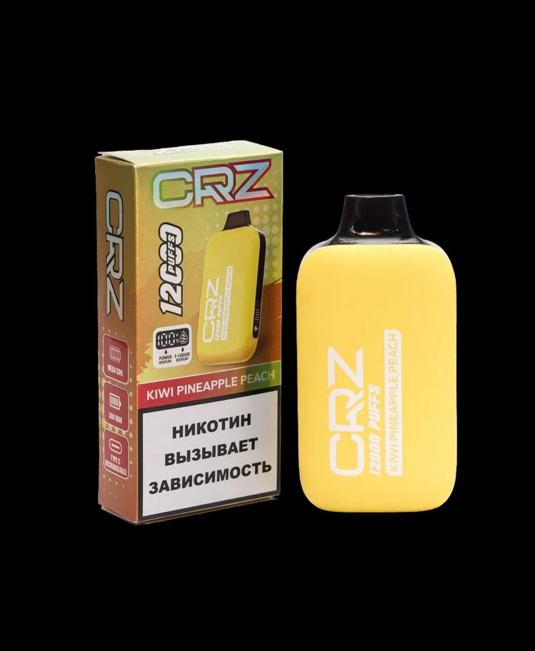 Главная особенность CRZ 12000 — стабильная работа и чистый вкус благодаря современному испарителю и качественным компонентам. Электронка оборудована перезаряжаемым аккумулятором и портом Type-C, что позволяет использовать устройство до полного расхода жидкости.